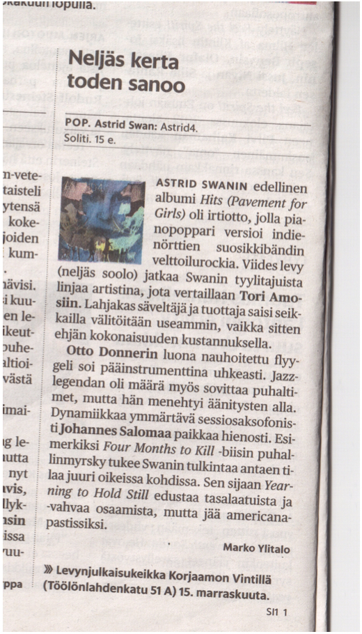 Astrid Swan – Neljäs kerta toden sanoo (Helsingin Sanomat, 13.11.2013)